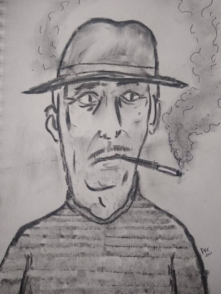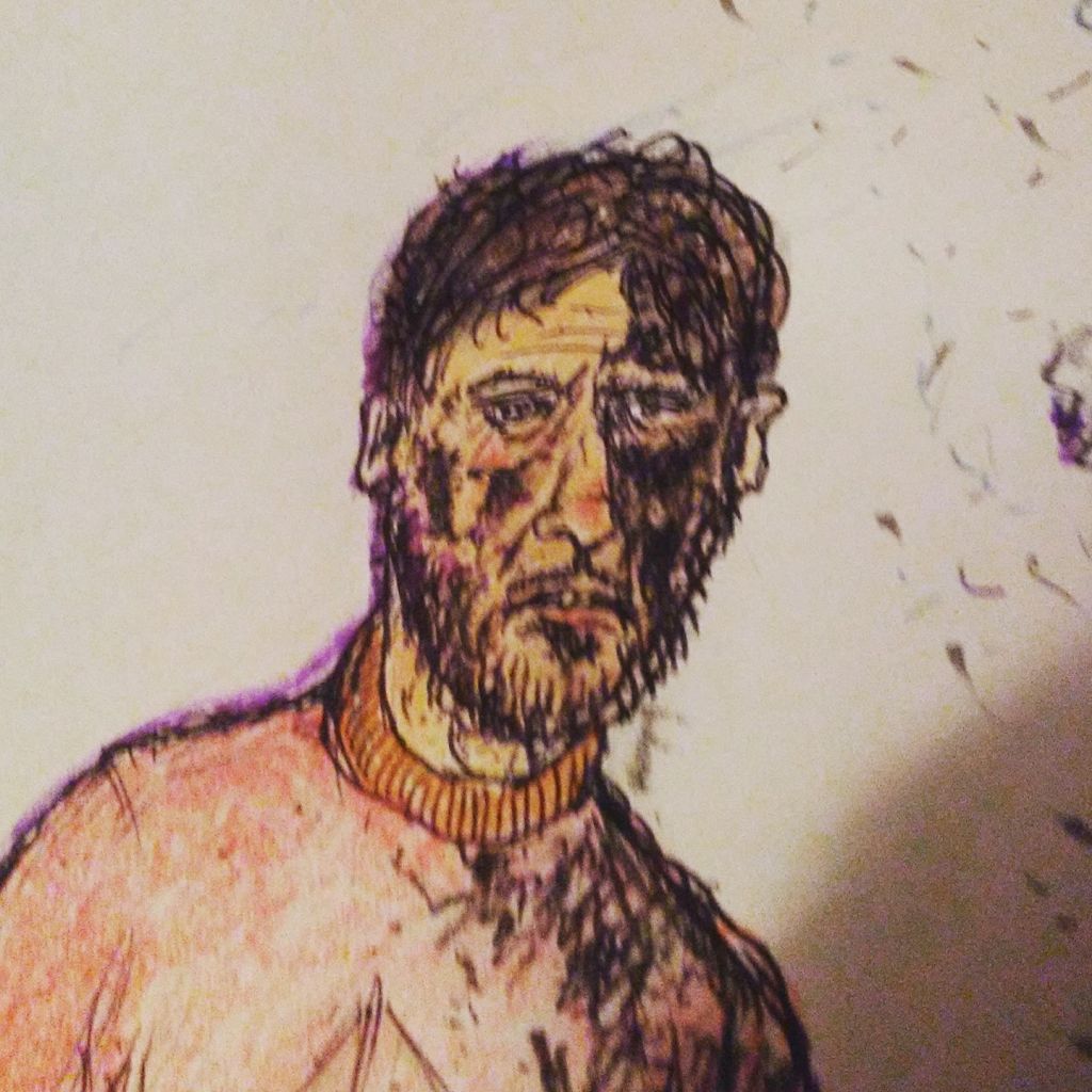 Encre, crayon de bois, fusain et traitement numérique colorisation, flou et grains. 2017.